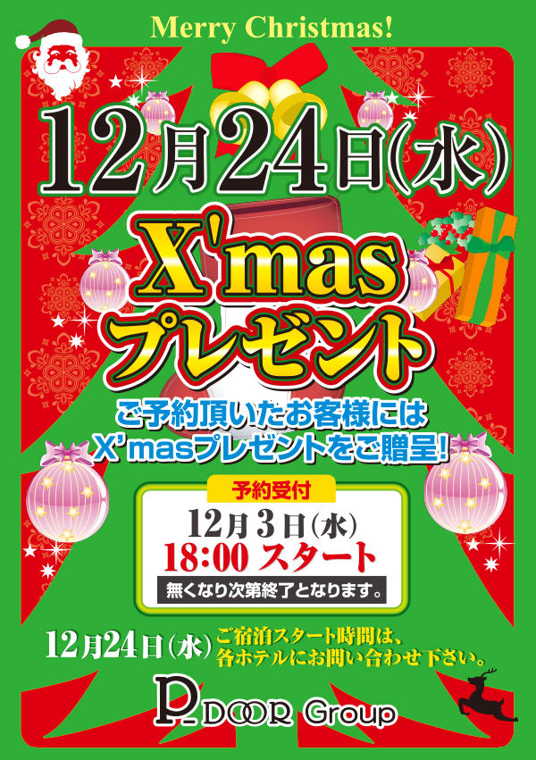 12月24日(水)ご予約頂いたお客様にX'masプレゼントをご贈呈!